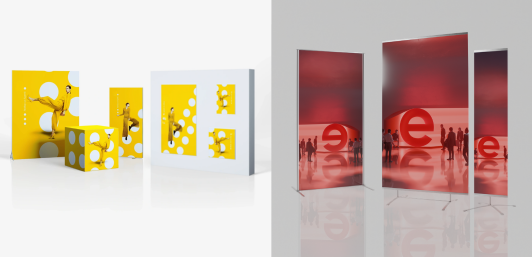 Kombinují lehkou hliníkovou konstrukci s textilní grafikou v systému SEG, či Flex která zajišťuje čistý vzhled, snadnou výměnu a dlouhou životnost. Využití nachází na výstavách, konferencích i v interiérových prostorách.