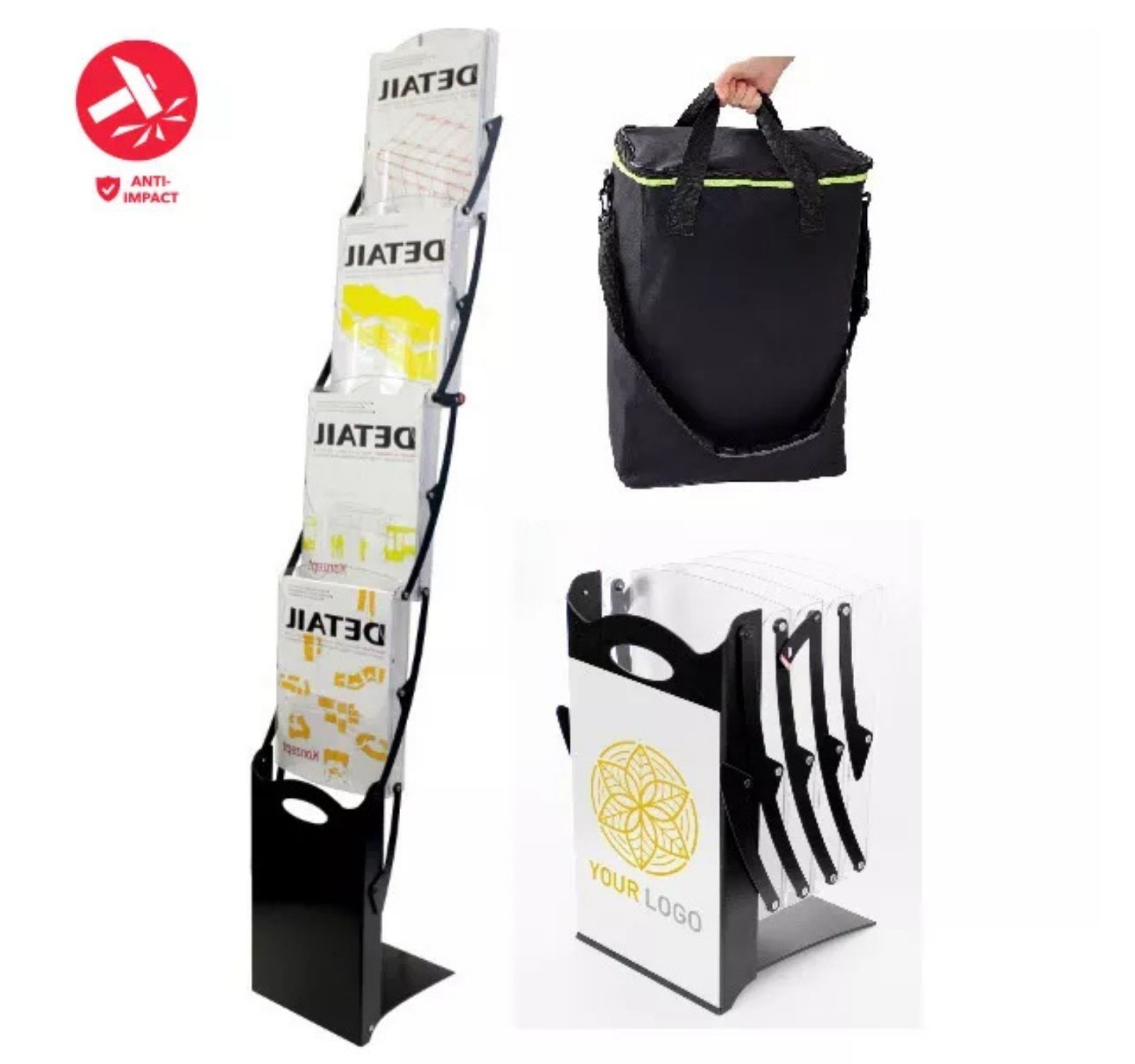Stojan na letáky REAL 4xA4 černý v tašce s ramenním popruhem